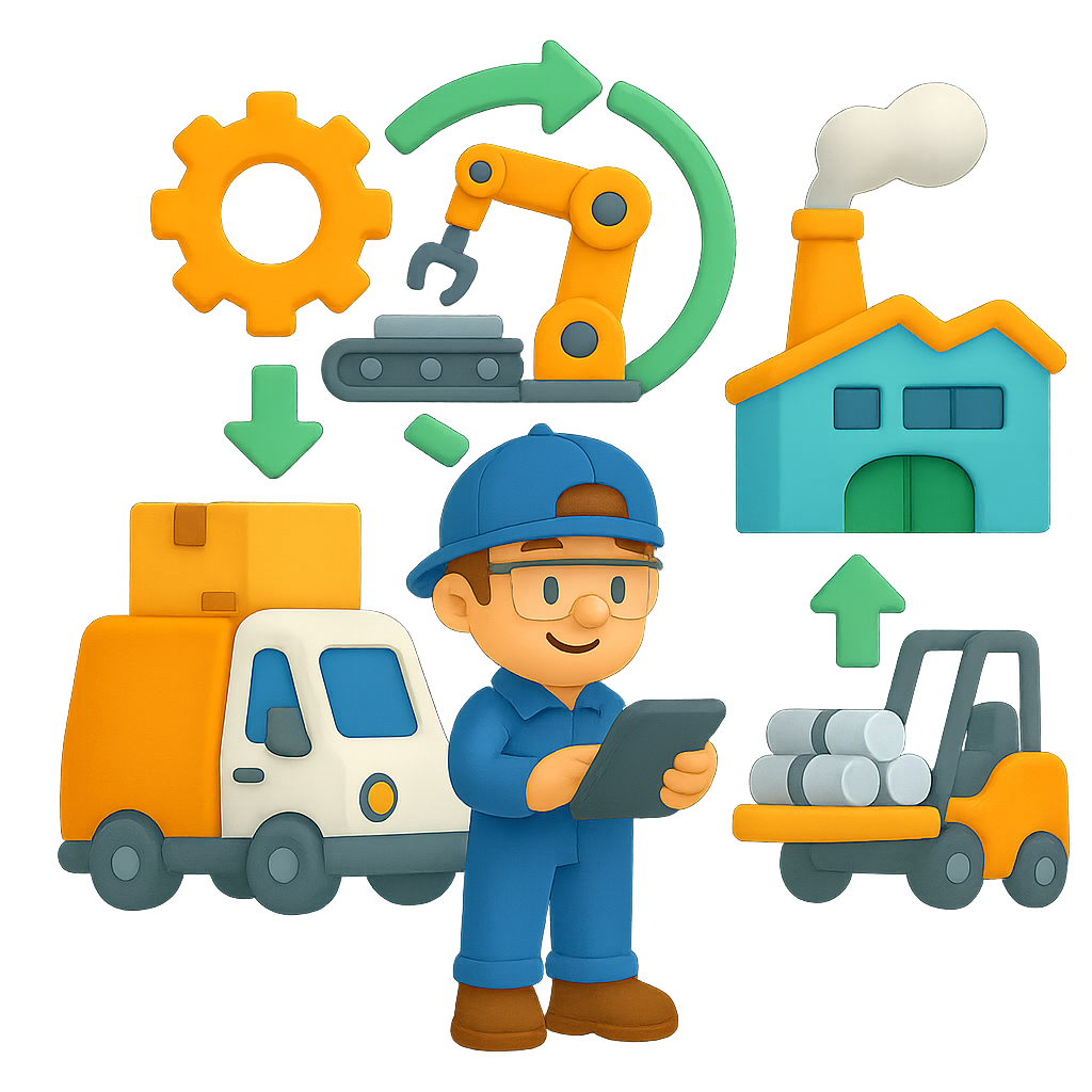 Rakennat prosessista ja koneista toimivan virtuaalimallin. Simuloit muutoksia ja vertaat skenaarioita turvallisesti.